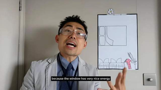 他的账号里,一条播放量破千万的视频,讲的是该如何在卧室里摆放床的位置。床不能挨着门,太多能量会进入眼睛;枕头不能挨着窗户,不然身体会产生浮动的感觉;床尾离门不小于1英尺,否则是个“死亡位置”。国外的网友称他为“神秘的东方男人”,不少人愿意按照他的方法更改自己的房间布局:“我猜我会死的,明天就把床挪走。”