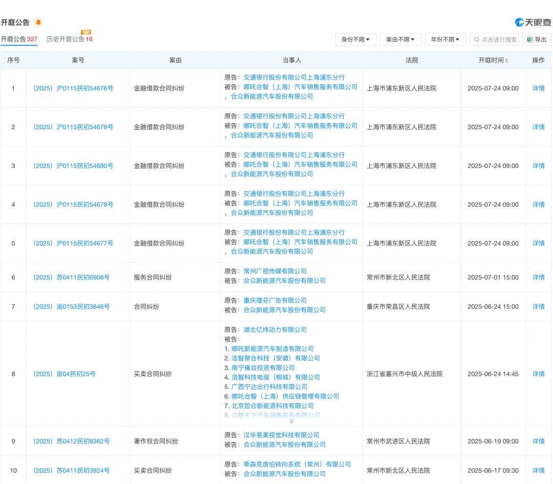 不久前,合众新能源汽车股份有限公司新增(2025)浙04破申3号,合众新能源汽车股份有限公司被上海禹形广告有限公司申请破产重整,经办法院为浙江省嘉兴市中级人民法院。