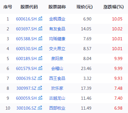 5月27日,食品饮料板块继续走强,金枫酒业、有友食品、均瑶健康、交大昂立、泉阳泉、会稽山、西王食品等多股涨停。