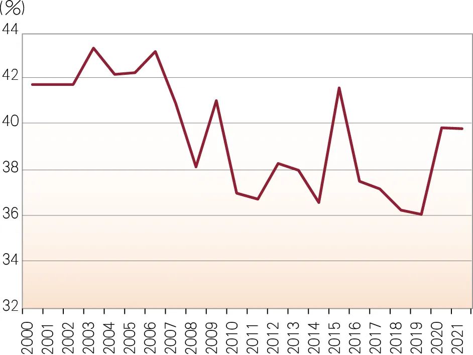 提升中收,增强收入韧性。低利率环境下,传统存贷业务的盈利空间遭受挤压,拓展中间业务、抬升非息收入成为必然选择。从国际经验来看,日本与美国的商业银行在经历低利率、低增长的双重“逆风”时,均开启了综合化经营的转型探索之路。从20世纪90年代初至2023年,日本银行业传统贷款比重从65%降至43%;相反,非息收入从20%升至25%以上。美国银行业在2000年后非息收入占比一直维持在35%—42%的较高水平(见图6)。特别是次贷危机后,美国银行业主动缩减次级抵押贷款业务,转型进一步加快。