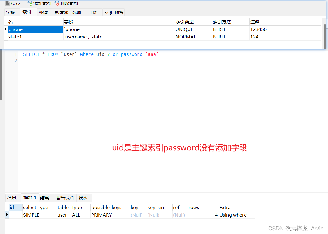 1.表中的索引