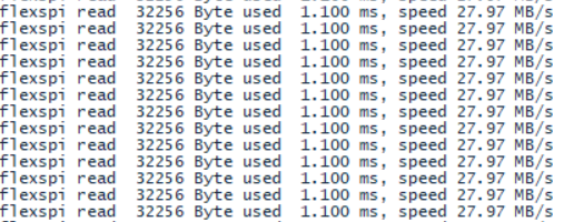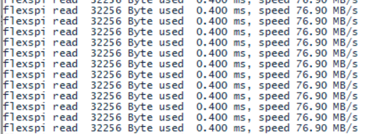 {uint64_t* startAddr = (uint64_t*)(EXAMPLE_FLEXSPI_AMBA_BASE + address);uint64_t * Pbuf = (uint64_t*) buffer;uint32_t len = length/sizeof(uint64_t);for(int i = 0;i实测通信速度如下图: