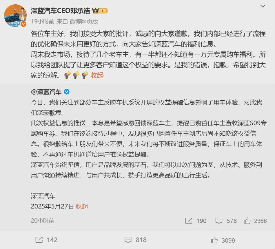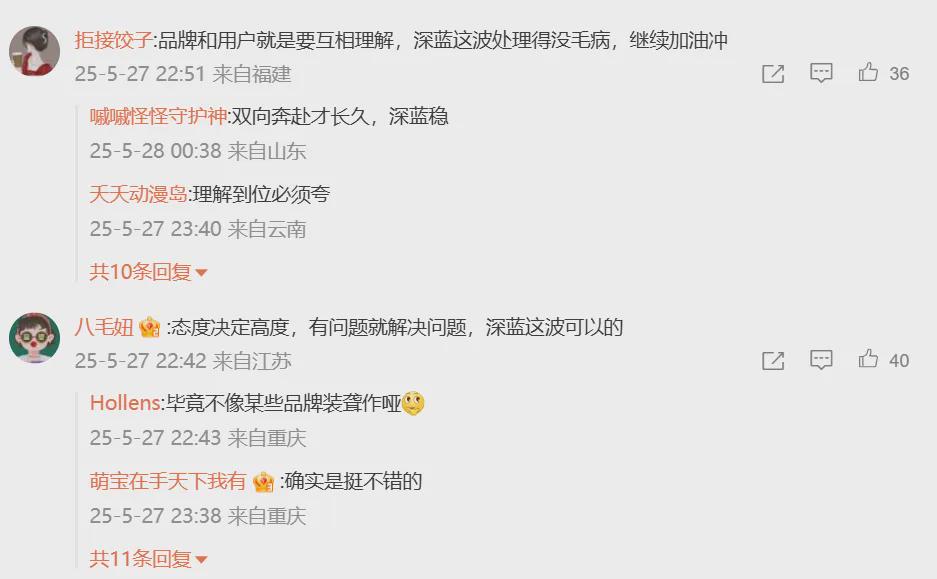 看到深蓝汽车的致歉,他们就觉得这是一家有担当、敢直面问题的企业,不像有些车企只会装聋作哑。