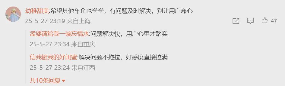 他们还不忘提点一下其他车企,让他们有问题及时解决,别让用户寒心。