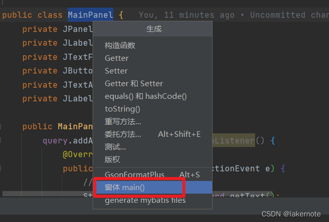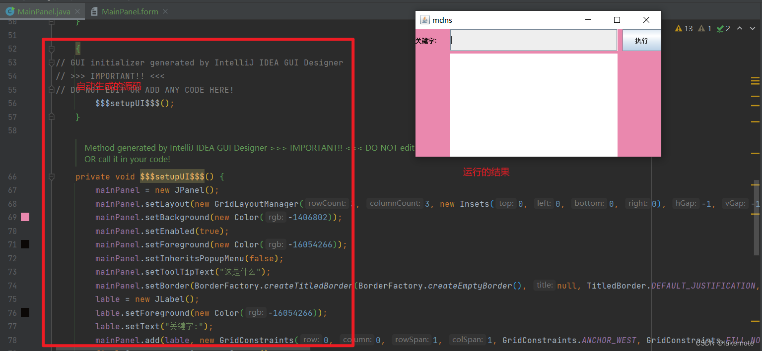 运行main方法,(idea自动)生成GUI对应源码。