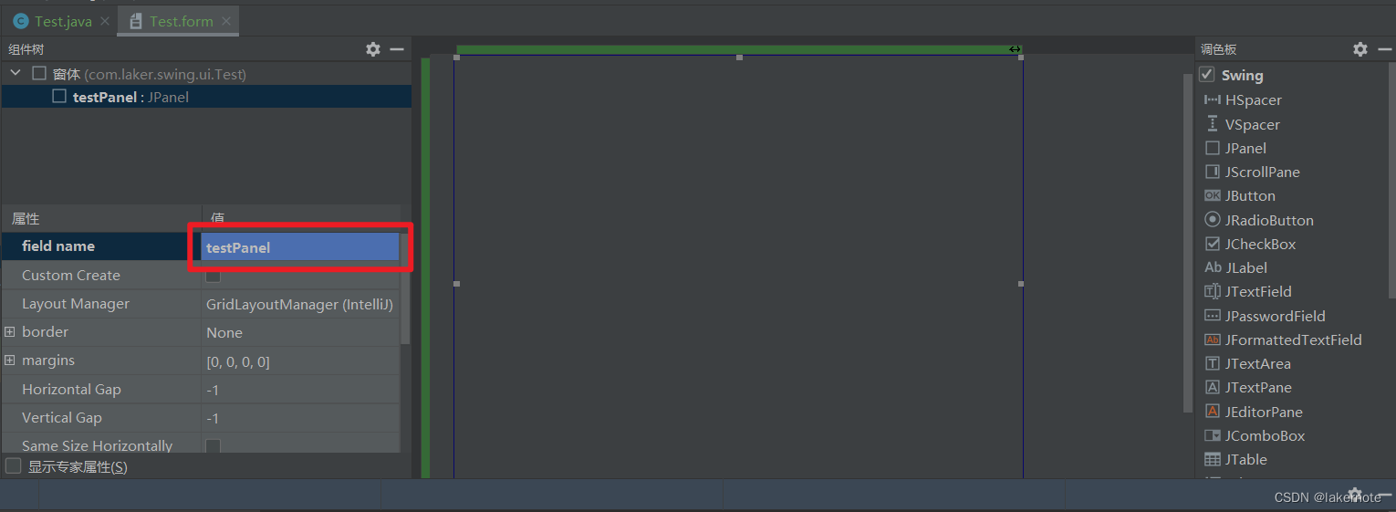 第二步:组件JPanel起一个字段名