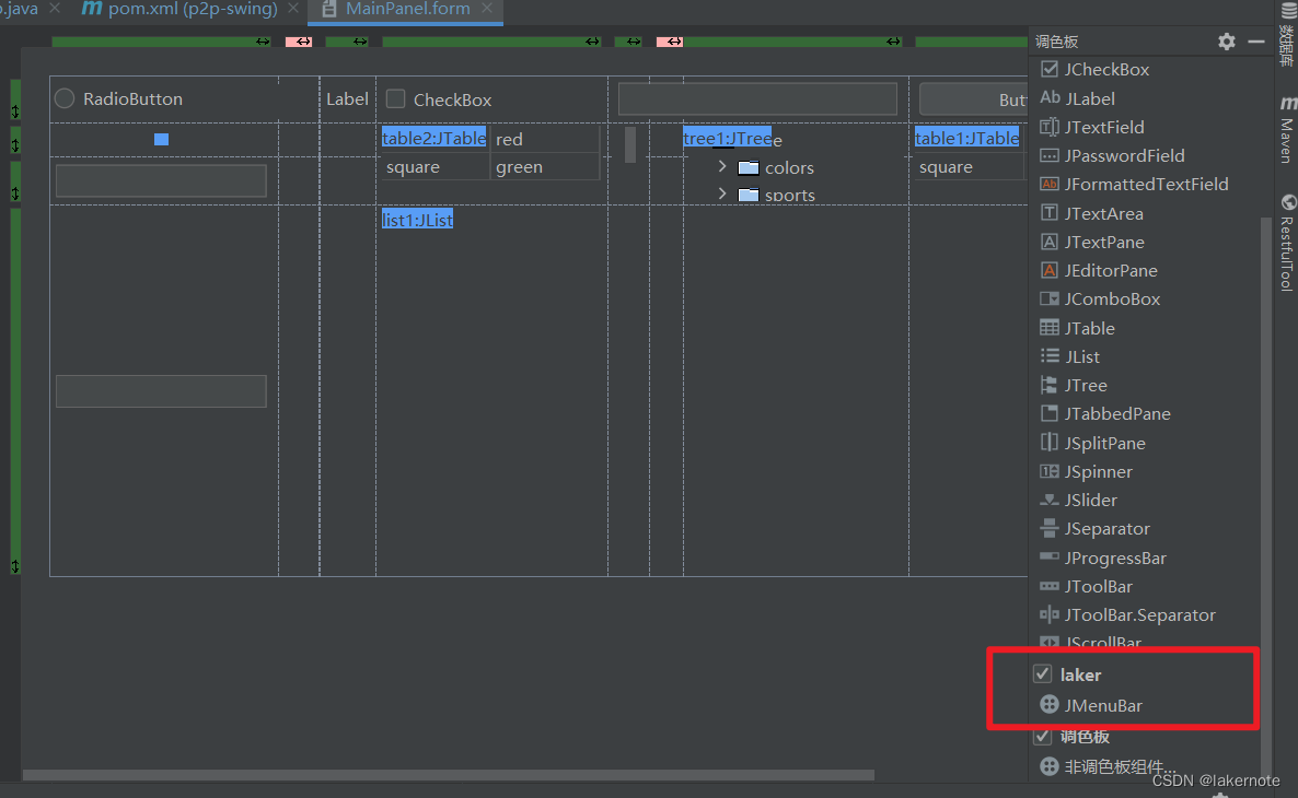 可拖拽列表中就会多出个我们自定义的组件JMenuBar