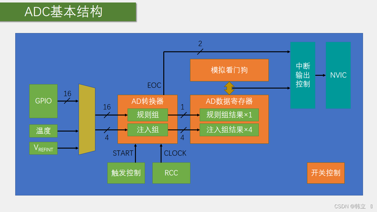 ADC可以将引脚上连续变化的模拟电压转换为内存中存储的数字变量,建立模拟电路到数字电路的桥梁。