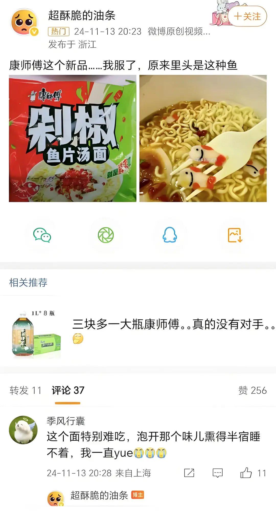 但是,从效果来看,这些创新并不理想,高价袋面和中价袋面的增长均出现下滑,高端化战略没有获得消费者认可。不仅如此,其发布的新品方便面“剁椒鱼片汤面”,还一度引发全网群嘲。