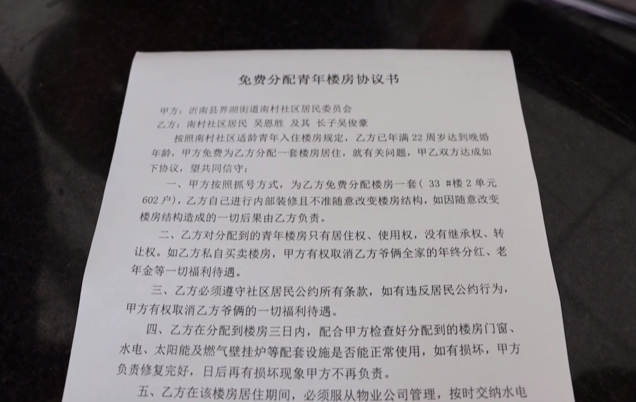 2021年,该村分配楼房时的协议书。图源:齐鲁晚报