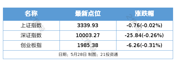 5月28日,市场全天窄幅震荡,三大指数小幅下跌。截至收盘,沪指跌0.02%,深成指跌0.26%,创业板指跌0.31%。沪深两市全天成交额1.01万亿,较上个交易日放量110亿。板块方面,饮料制造、可控核聚变、垃圾分类、深海科技等板块涨幅居前,电商、化学原料、CRO、造纸等板块跌幅居前。