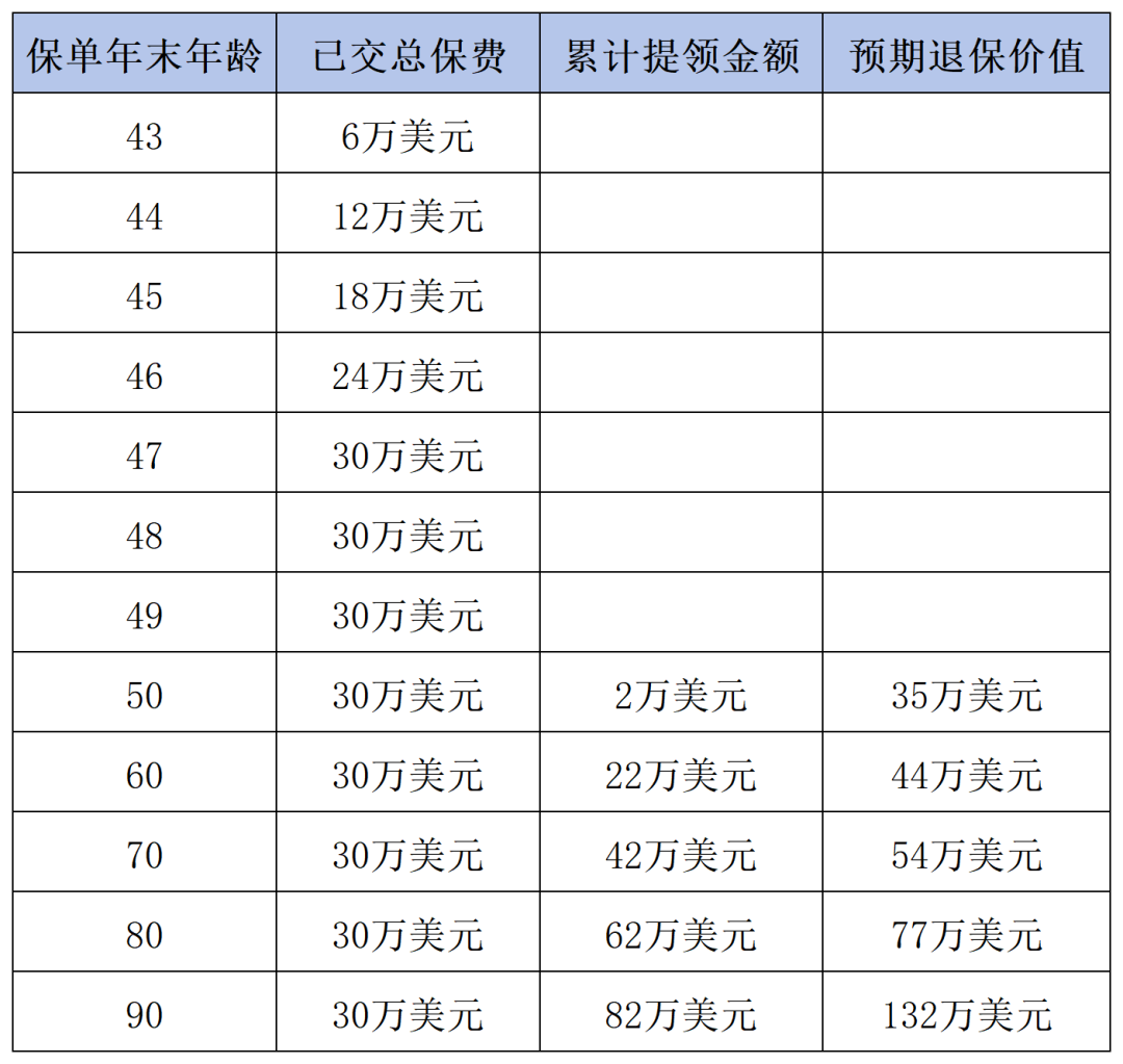 累计已领取“养老金”82万美元(约590万人民币),此时退保预期还能再拿回132万美元(约949万人民币)。