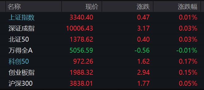 中新经纬5月29日电 29日早间,A股三大指数微幅高开,上证指数涨0.01%,报3340.40点;深证成指涨0.03%,报10006.43点;创业板指涨0.15%,报1988.32点。