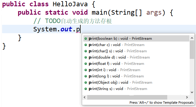 }读者输入上面代码的时候,会充分体会到 Eclipse 强大的代码辅助功能。图 8 所示为代码的自动提示补全功能。