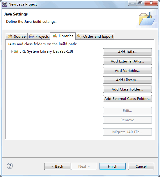 图 1 New Java Project(新建Java项目)对话框