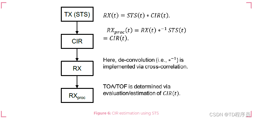 对于IEEE 802.15.4 HRP UWB PHY,通过关联可以获得较高的动态范围。通道的脉冲响应(CIR)由相关器确定/估计,作为与传入无线电分组相关的已知脉冲模式(前导)上的去卷积算子。
