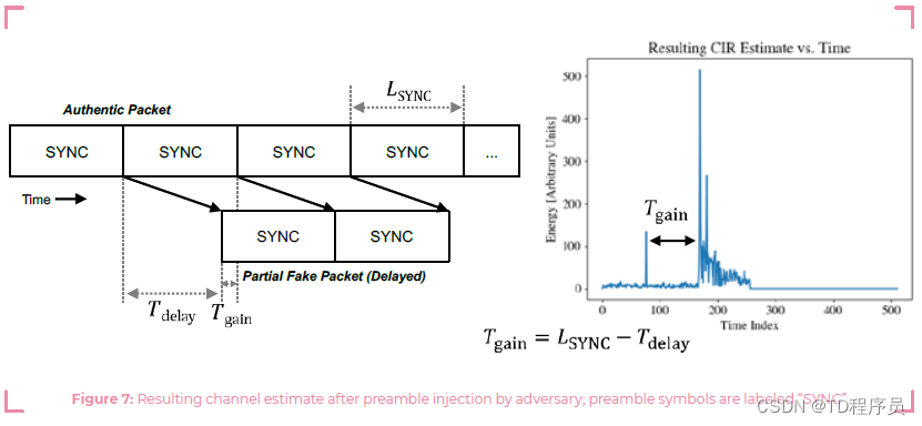 这种场景被称为“前置注入攻击”,如下图所示。请注意,当原始数据包包含大量的序文符号时,即使对手的延迟假信号每个序文符号只包含一个脉冲,这种类型的攻击也可能成功。