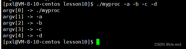 这里的./myproc,-a,-b,-c,-d我们都把他们看做字符串。这个argv数组是动态变化的,数组中的元素依赖于所传参数的个数,这个数组中有几个有效命令行字符串由argc决定。同时这个数组会多一个元素,最后一个元素执行NULL。这就是命令行参数的一个基本理解。换言之,我们在命令行上传的各种各样的数据,最终都会传递给main函数,然后有main函数拿到后依次保存在argv中,用argc表明我们的个数。