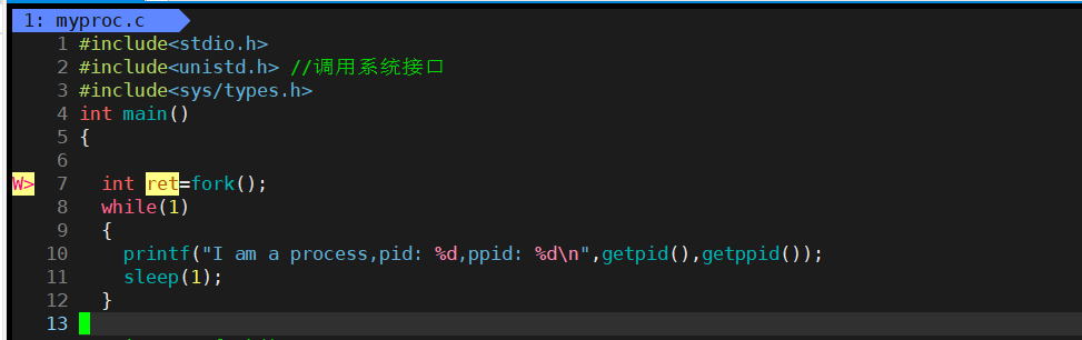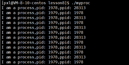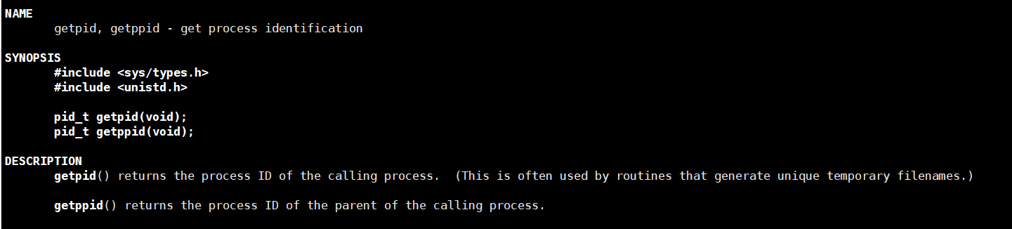 { printf("I am a process pid: %d,ppid: %d\n",getpid(),getppid());