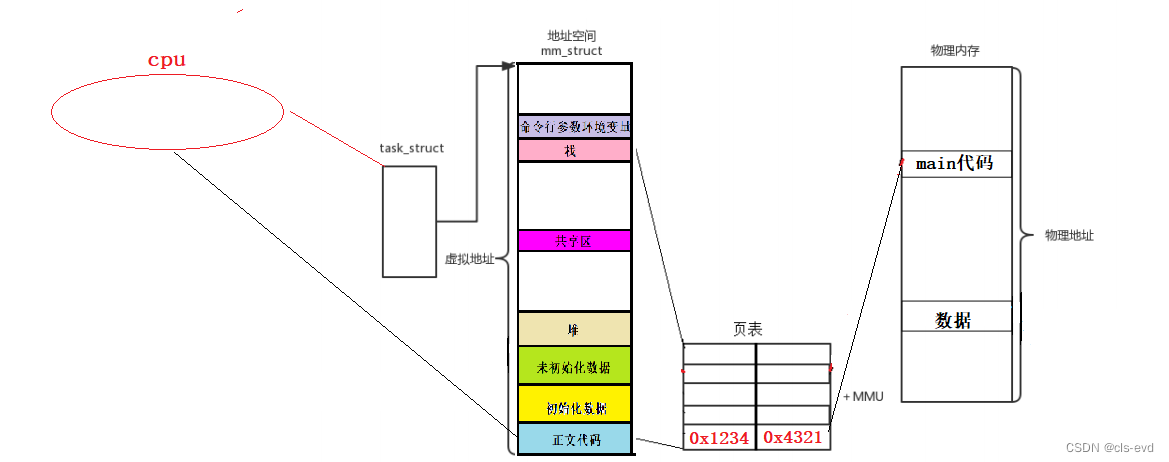 eg:我认为我的code_start是从50开始,code_end是100结束,按照50~100进行划分的,那么50,51,52...都认为是虚拟内存地址。可是进程本身的代码和数据一定是在物理内存上存储的,那么这个地址空间和我们的物理内存有什么关系呢?