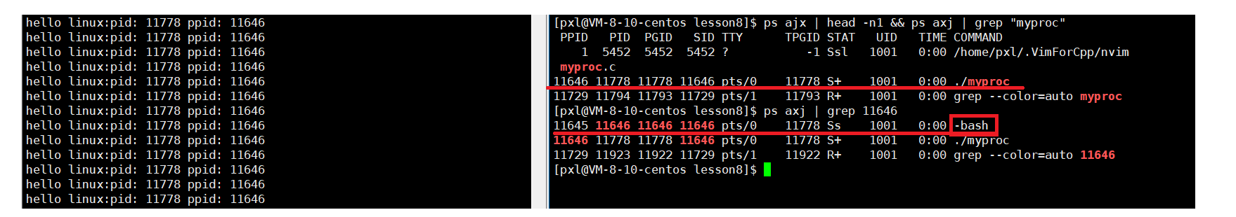 多跑几次我们发现pid一直在变,ppid一直不变 .那么这个ppid是谁呢?