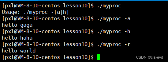 #include#include #include int main(int argc,char *argv[]) { if(argc!=2) //因为命令行参数必须是两个 { printf("Usage: %s -[a|h]\n",argv[0]); //提示输入格式 return 1; } if(strcmp(argv[1],"-h")==0) { printf("hello haha\n"); } else if(strcmp(argv[1],"-a")==0) { printf("hello gaga\n"); } else { printf("hello world\n"); } }