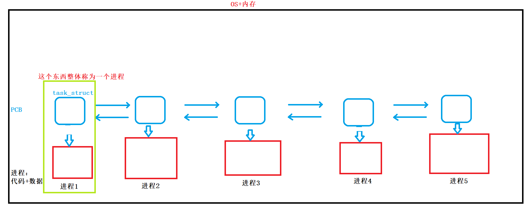 每个私生子都被画了张饼,都认为自己有100个亿。同样的每个进程都有一个地址空间,都认为自己在独占物理内存!系统里面的进程很多,所以地址空间也很多,操作系统就要管理起这些地址空间,如何管理呢?先描述,再组织。OS用结构体 mm_struct 描述进程地址空间,换言之,将来创建进程的时候,除了要创建PCB之外,每个进程都要有一个mm_struct的结构体。