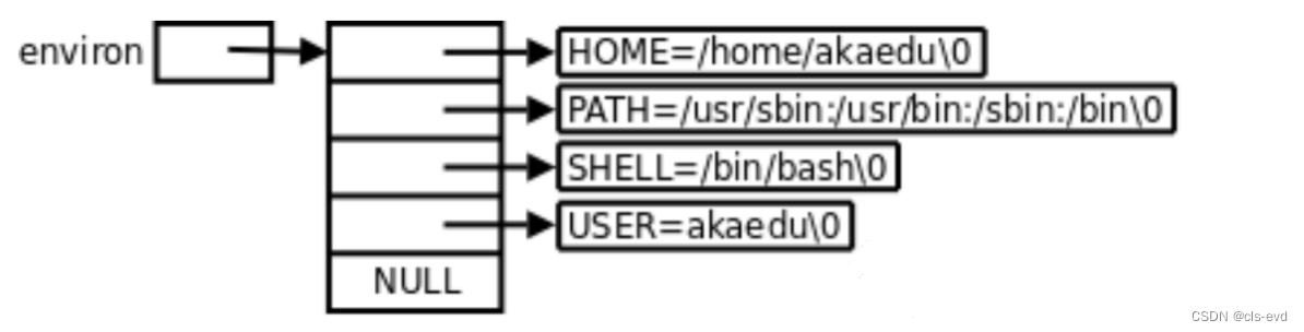 environ是char**,env数组元素是char*,我们就可以用environ指向这些元素获取环境变量。