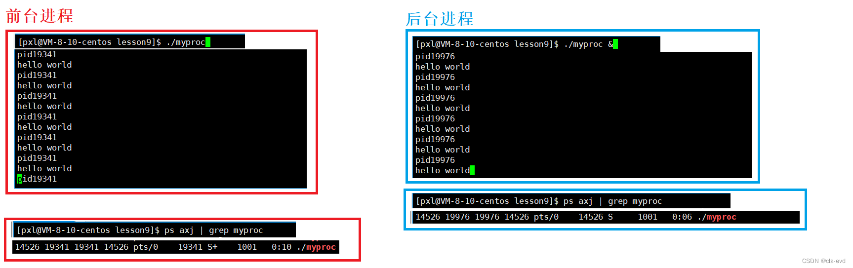 { //数据是各自私有一份的(写时拷贝),子进程数据改了,父进程数据不受到影响 if(fork()==0) { //child int cnt=5; while(cnt) { printf("I am child,times: %d, g_val=%d ,&g_val=%p\n",cnt, g_val,&g_val); cnt--; sleep(1); if(cnt==3) { printf("############child更改数据#############\n"); g_val=200; printf("###########child更改数据done###########\n"); } } } else { //parent while(1) { printf("I am father ,g_val=%d,&g_val=%p\n",g_val,&g_val); sleep(1); } }return 0;