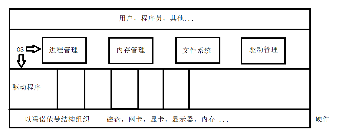 任何计算机系统都包含一个基本的程序集合,称为操作系统(OS)。笼统的理解,操作系统包括: