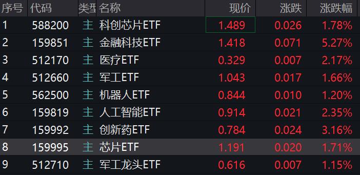芯片ETF震荡拉升,截至发稿,芯片ETF(159995)涨1.71%,科创芯片ETF(588200)涨1.78%。