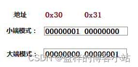 {unsigned short val = 0x0001;unsigned char* p = (unsigned char*)&val;  //C/C++:对于多字节数据,取地址是取的数据对象的第一个字节的地址,也就是数据的低地址return (*p == 0x01);