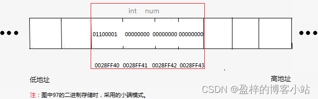 已知:num的类型是int,占用了4个字节的内存空间,其值是97,地址是0028FF40。我们从以下几个方面去分析。
