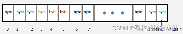 也就是说,虚拟存储器是一个很大的,线性的字节数组(平坦寻址)。每一个字节都是固定的大小,由8个二进制位组成。最关键的是,每一个字节都有一个唯一的编号,编号从0开始,一直到最后一个字节。如上图中,这是一个4GB的虚拟存储器的模型,它一共有4x1024x1024x1024 个字节,那么它的虚拟地址范围就是 0 ~ 4x1024x1024x1024-1 。