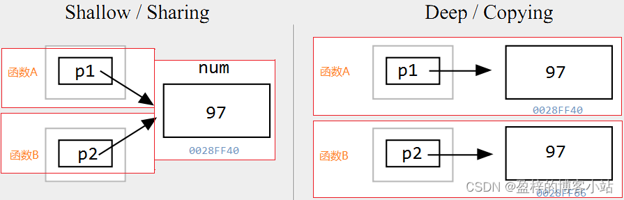指针赋值和int变量赋值一样,就是将地址的值拷贝给另外一个。指针之间的赋值是一种浅拷贝,是在多个编程单元之间共享内存数据的高效的方法。