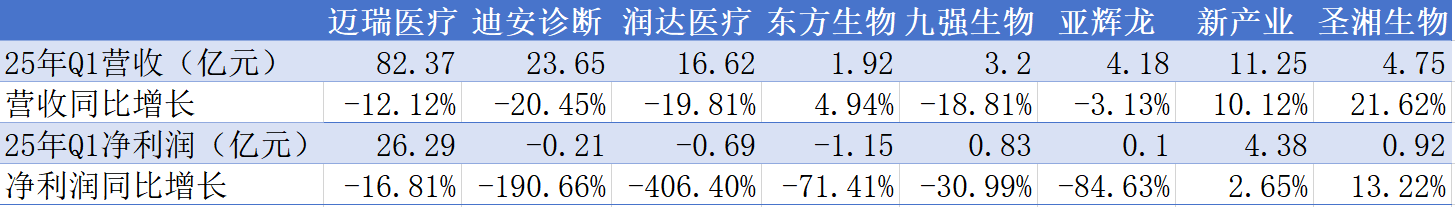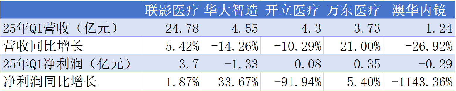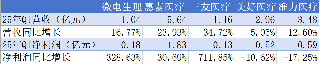 医疗器械企业2025年一季报陆续出炉。