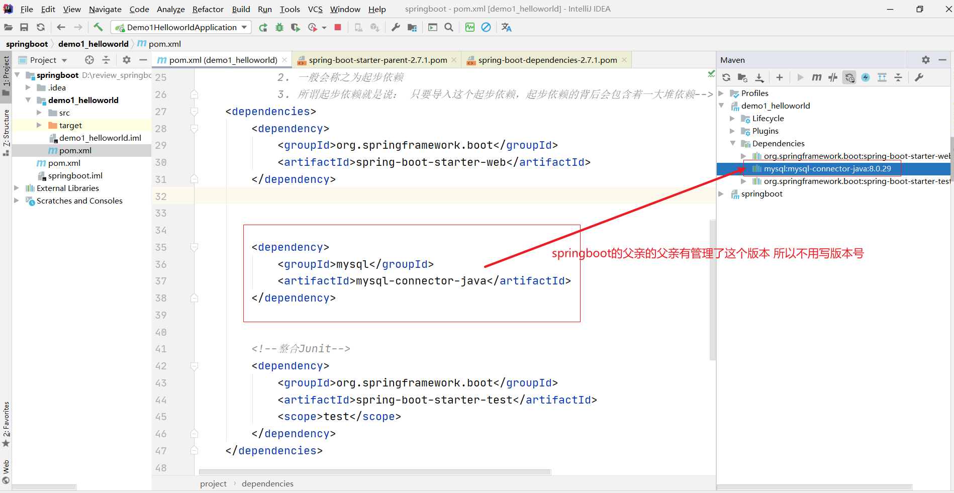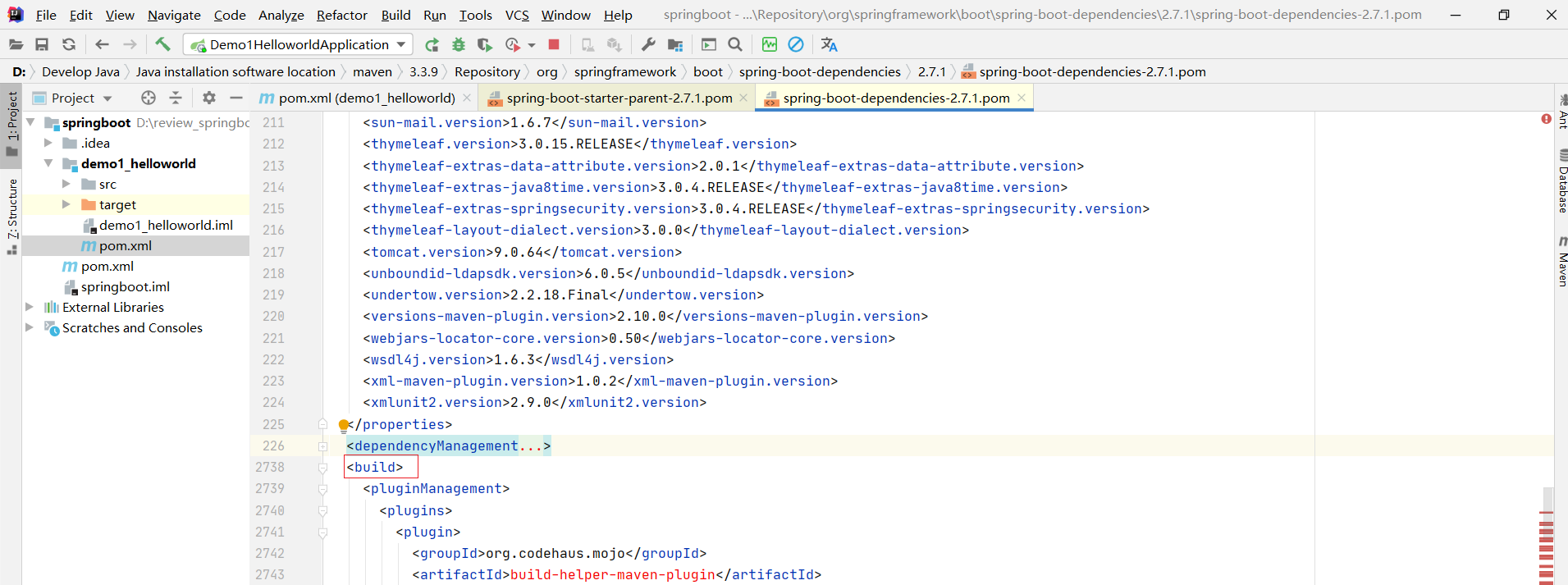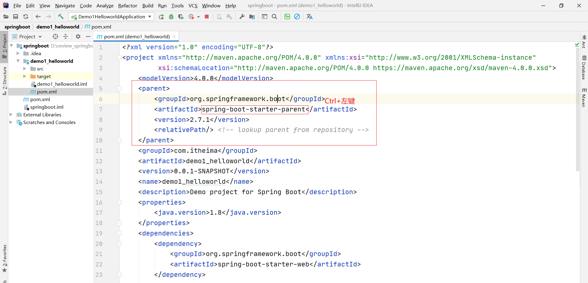 4.0.0 org.springframework.boot spring-boot-starter-parent 2.7.1 com.itheima demo1_helloworld 0.0.1-SNAPSHOT demo1_helloworld Demo project for Spring Boot