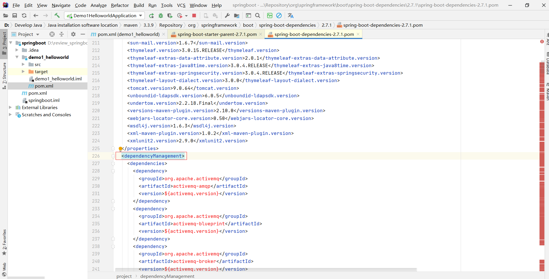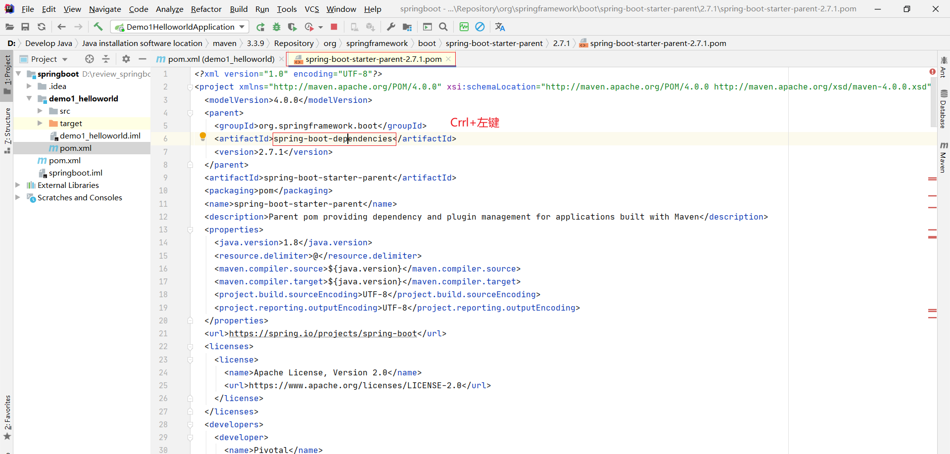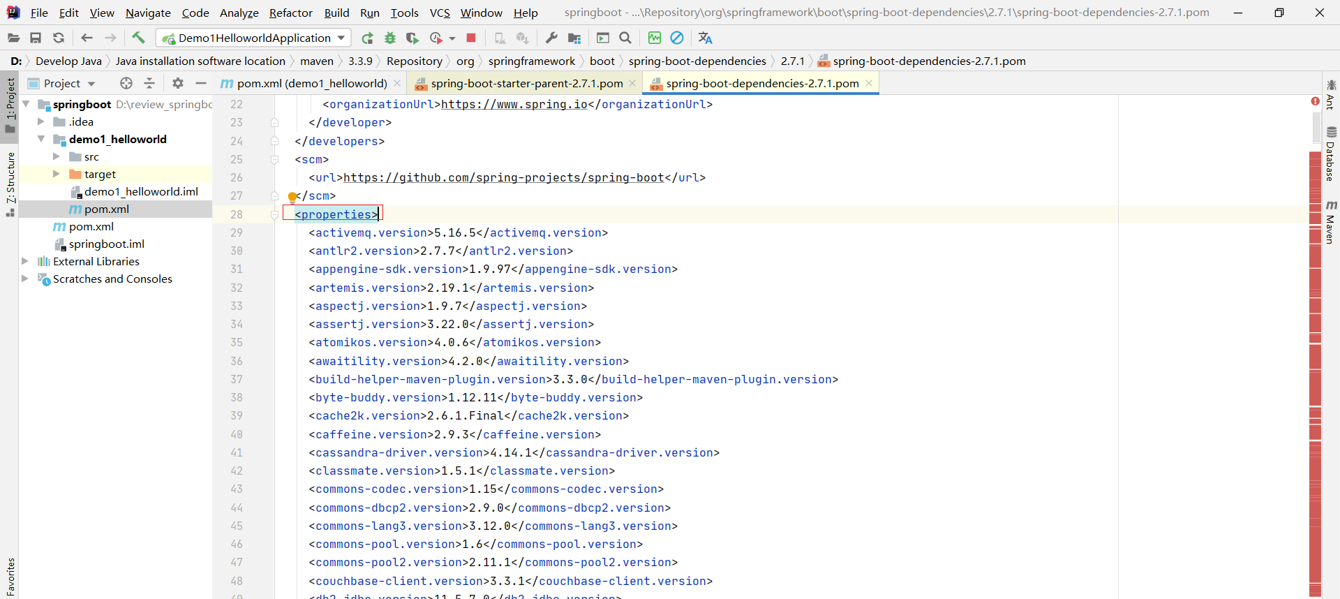 4.0.0 org.springframework.boot spring-boot-starter-parent 2.7.1 com.itheima demo1_helloworld 0.0.1-SNAPSHOT demo1_helloworld Demo project for Spring Boot