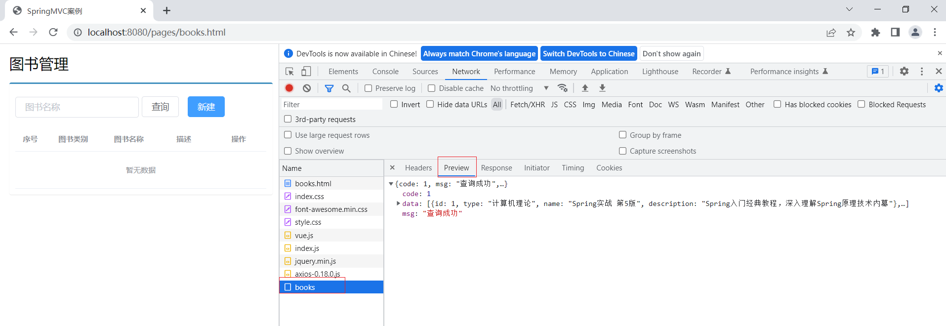 methods: {//列表getAll() {axios.get("/books").then(resp=>{console.log(resp);this.dataList = resp.data.data;});重启