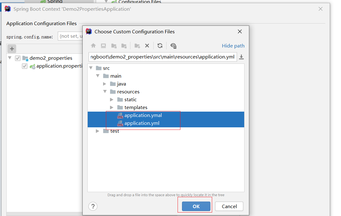 如果发现上面的ok点不了 可能是没有application.properties 我们要先把这个给创建出来