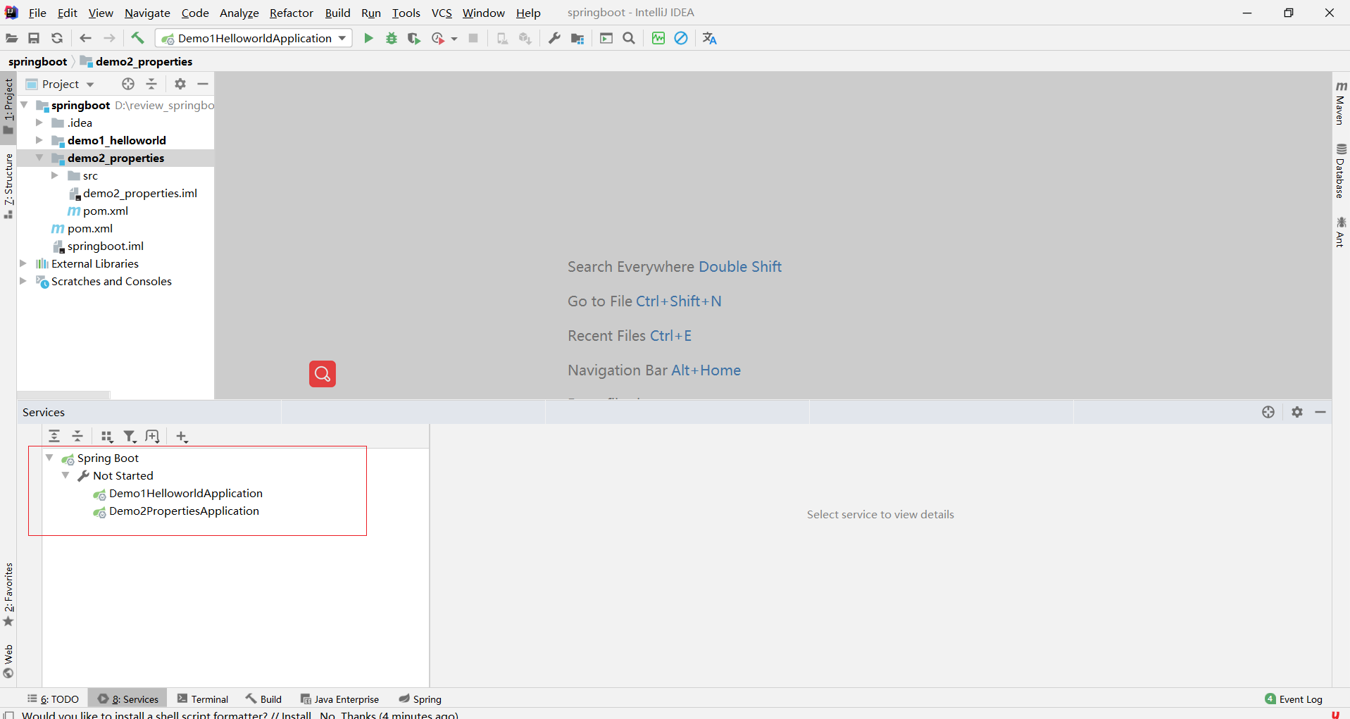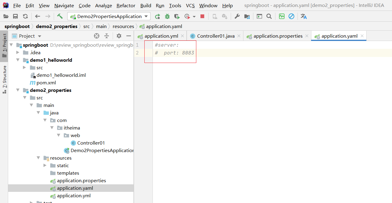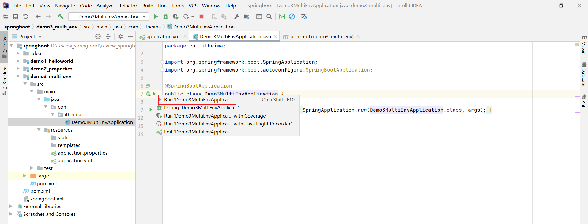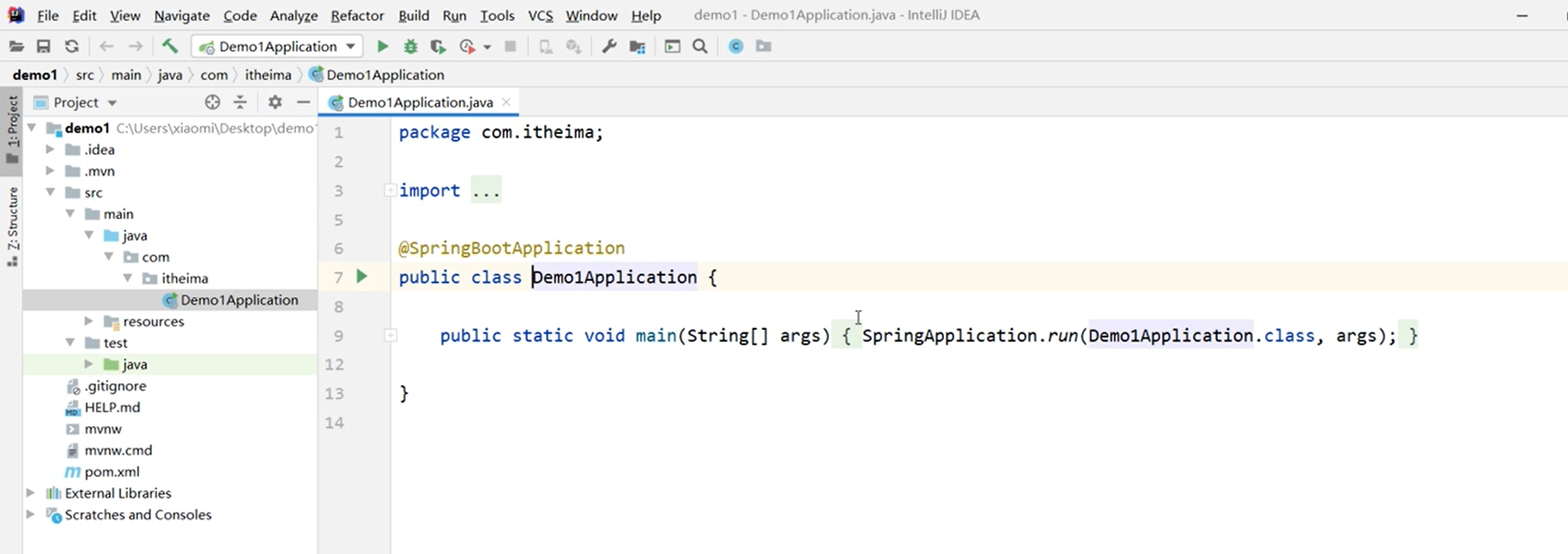 public class Demo1HelloworldApplication {public static void main(String[] args) {SpringApplication.run(Demo1HelloworldApplication.class, args);}}