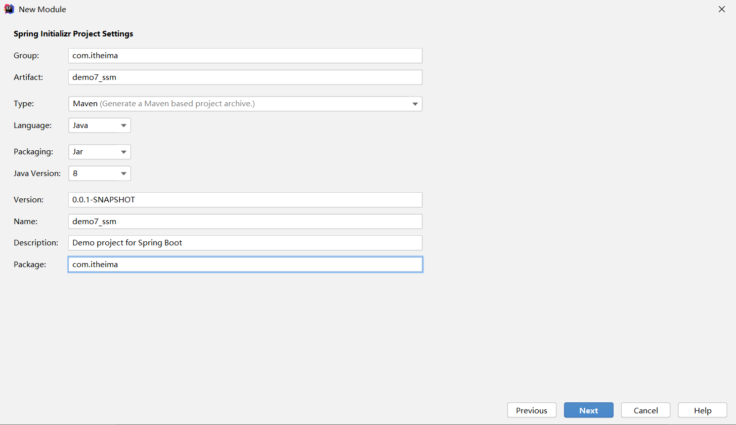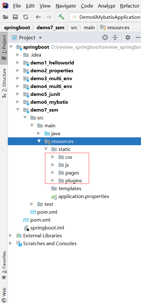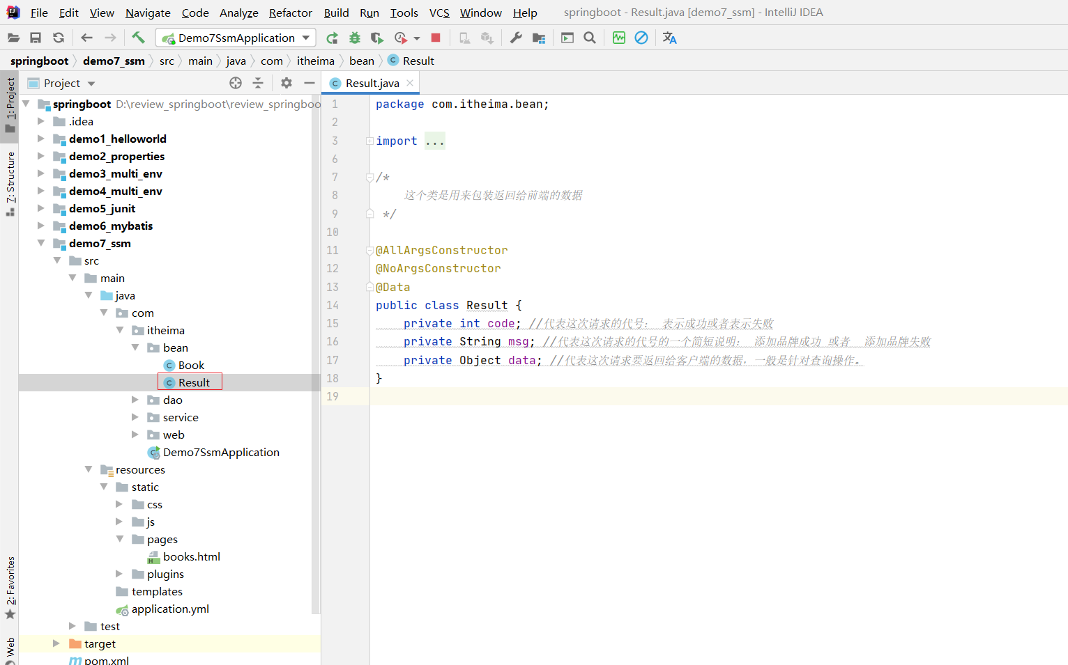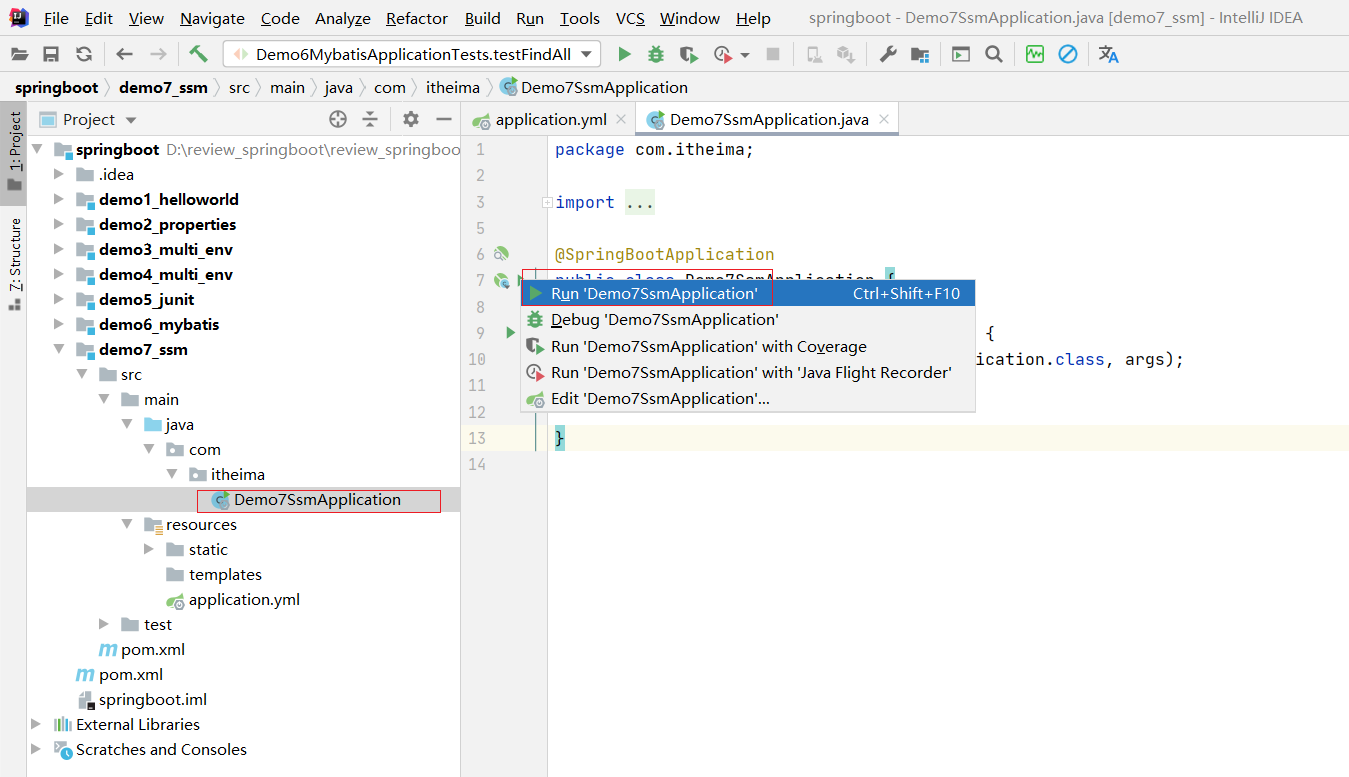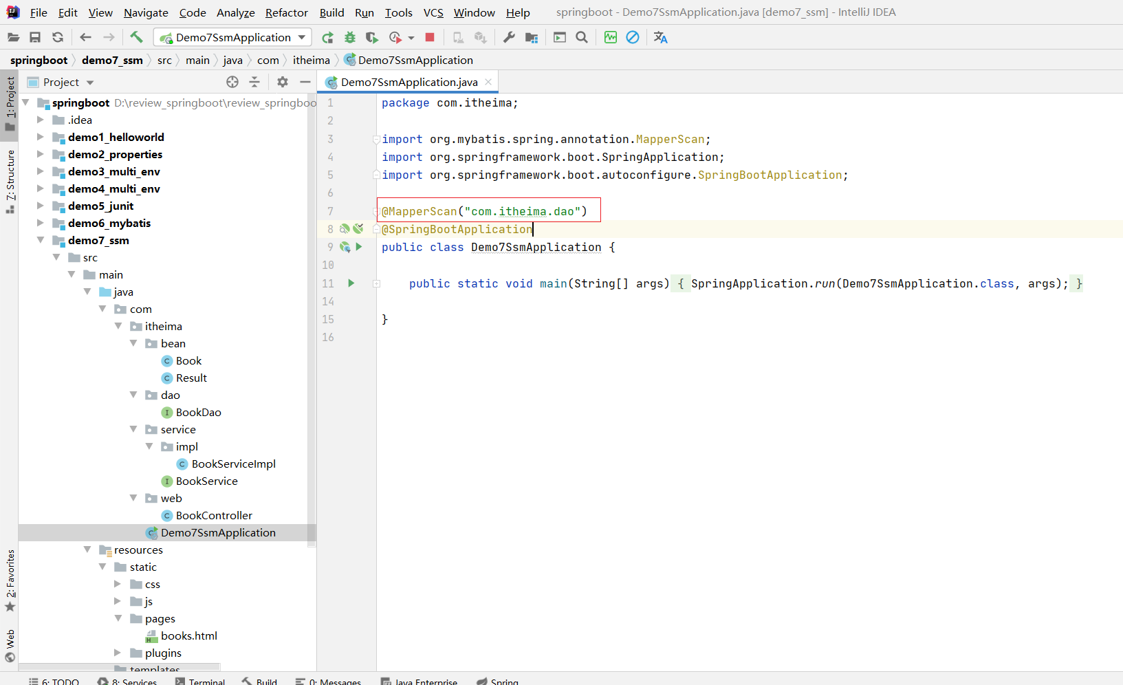 public class Demo7SsmApplication {public static void main(String[] args) {SpringApplication.run(Demo7SsmApplication.class, args);}}