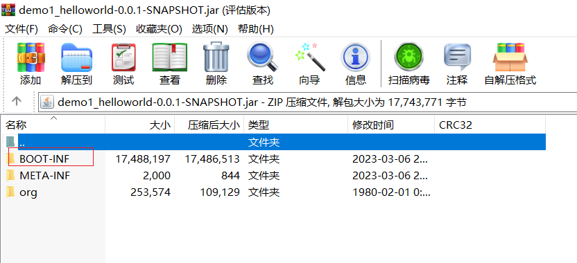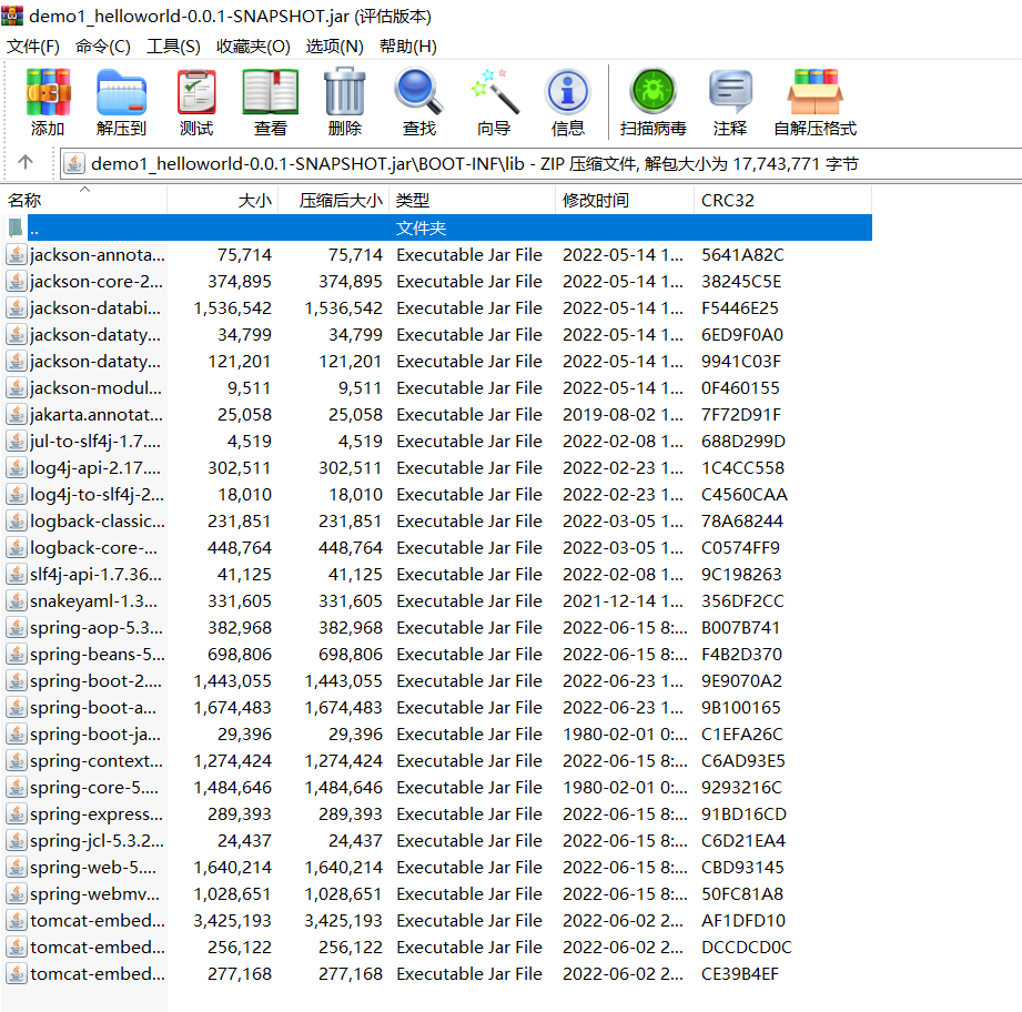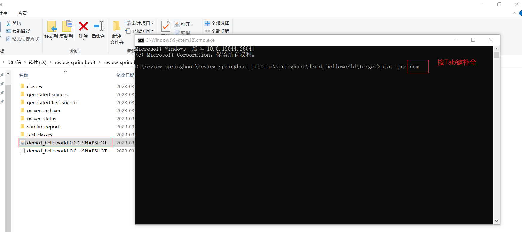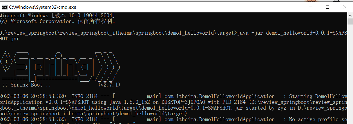 java -jar ava -jar demo1_helloworld-0.0.1-SNAPSHOT.jar # 项目的名称根据实际情况修改例子