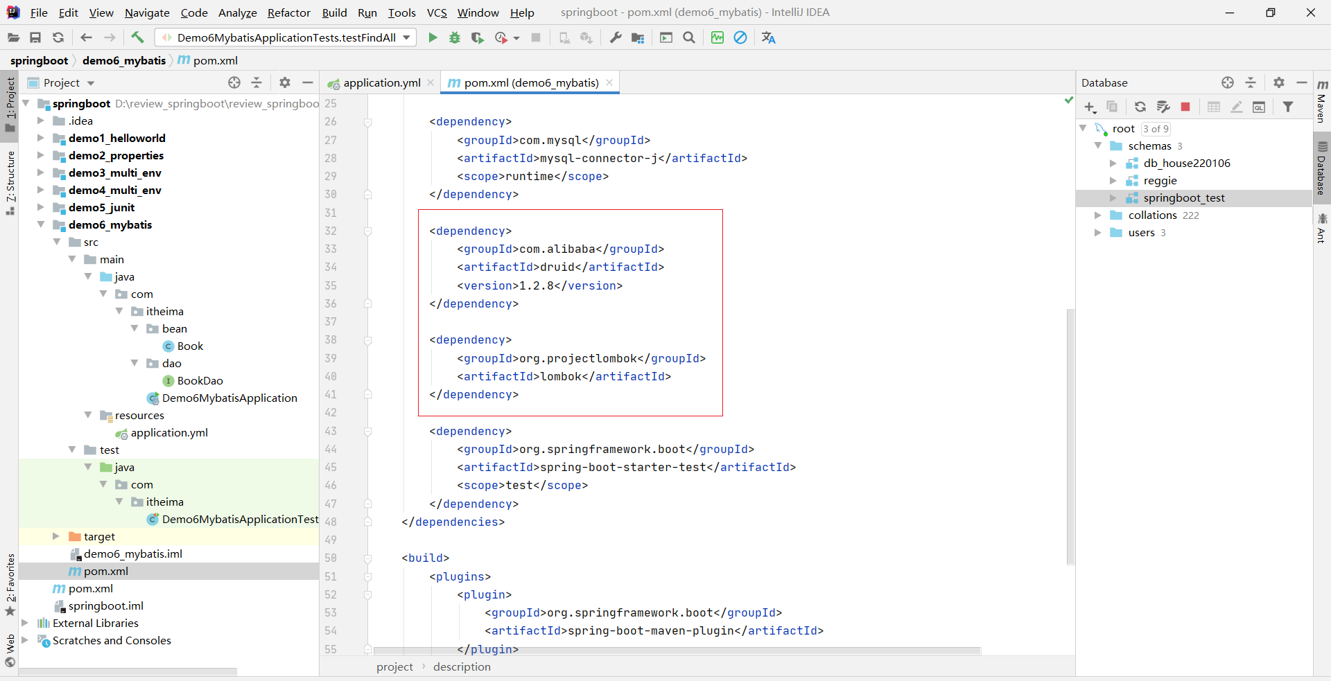 jdbc:mysql://localhost:3306/springboot_test?serverTimezone=UTC加入druid连接池 和lombok依赖