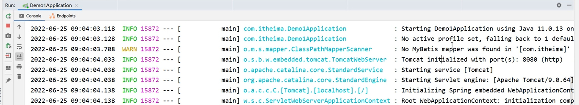 public class Demo6MybatisApplication {public static void main(String[] args) {SpringApplication.run(Demo6MybatisApplication.class, args);}}