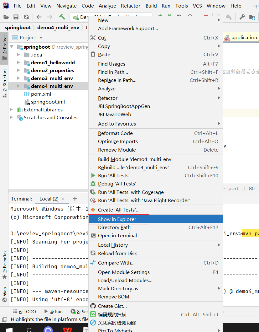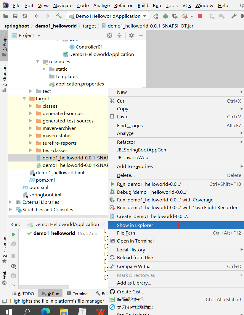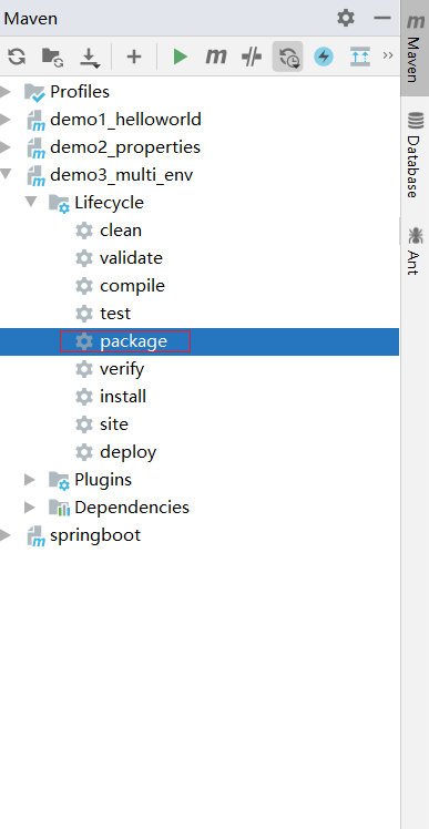 ① 对SpringBoot项目打包(执行Maven构建指令package)