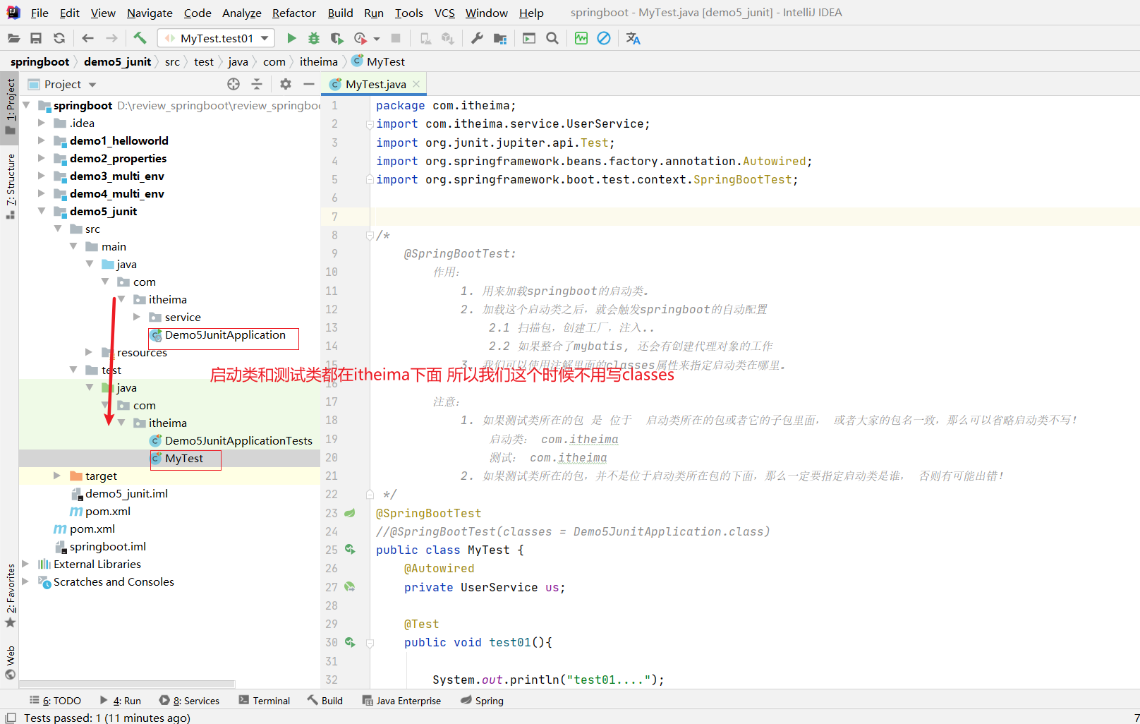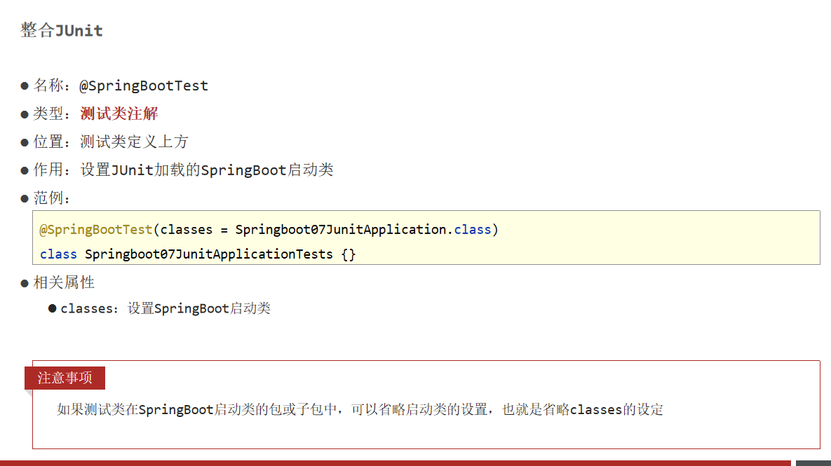 2. 如果测试类所在的包,并不是位于启动类所在包的下面,那么一定要指定启动类是谁, 否则有可能出错!