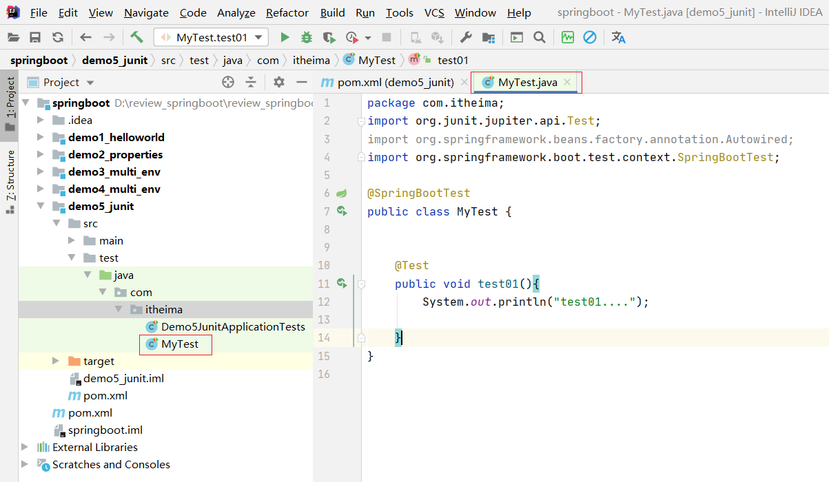 public class MyTest {@Testpublic void test01(){System.out.println("test01....");}