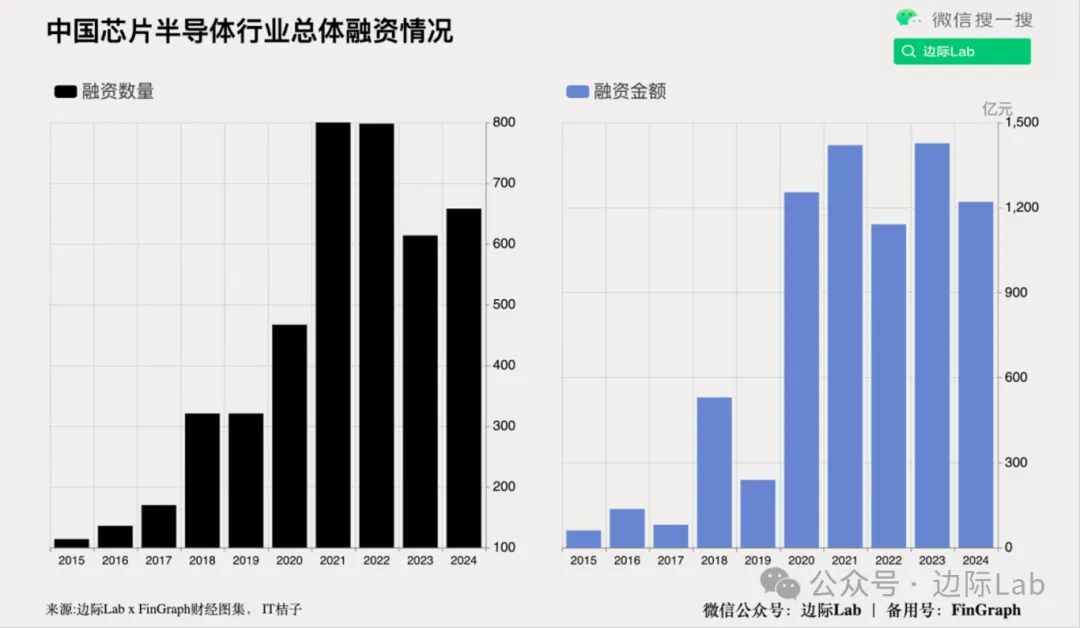 3.2024年,中国半导体一级市场共发生658起融资交易,同比增长7.17%,但总金额下降14.45%至1220.16亿元。随着半导体制程接近物理极限,技术创新难度和成本大增,叠加高风险与长周期特征,令部分资本趋于谨慎。同时行业周期波动明显,过去十年融资热度呈“缓增—快升—回落”趋势。