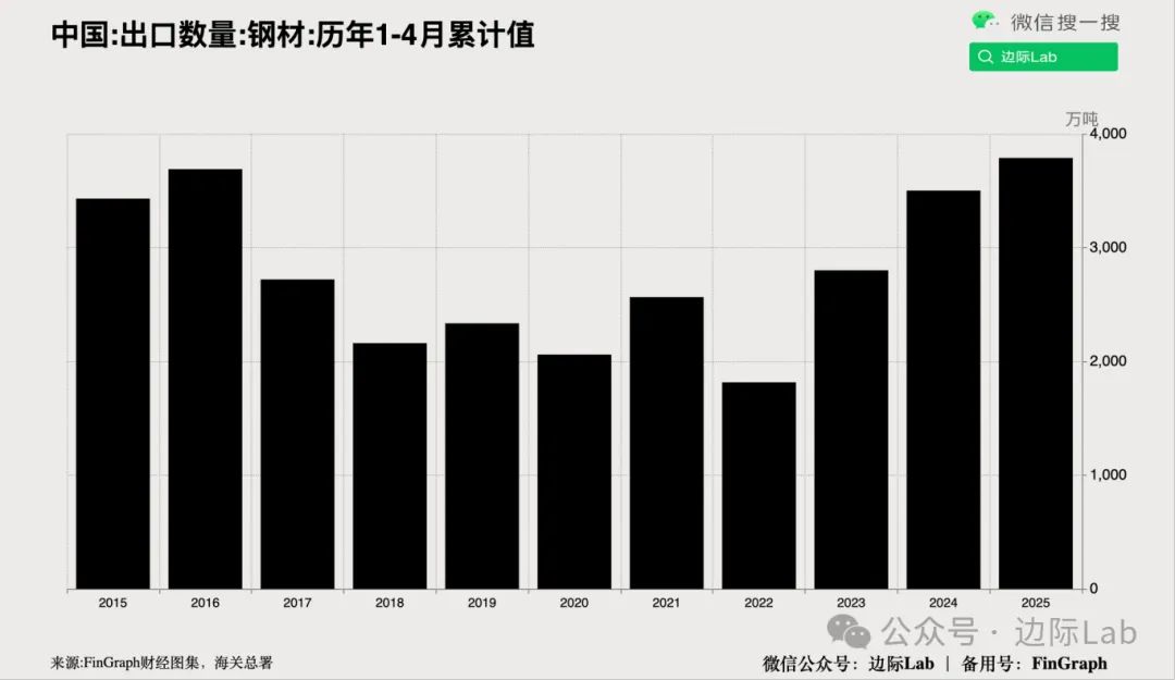 5.高盛预计,中国钢铁出口在2024年创下九年新高后将见顶,2025年将小幅回落3%,2026年将大幅下降约三分之一,主因是全球反倾销调查增多及国内产量减少。2026年,全国钢产量预计降至9.46亿吨,较2020年峰值低逾10%。同期,受制于制造业需求不足及房地产需求持续疲软,国内消费预计2025年将下降2%至8.39亿吨,为连续第五年下滑。